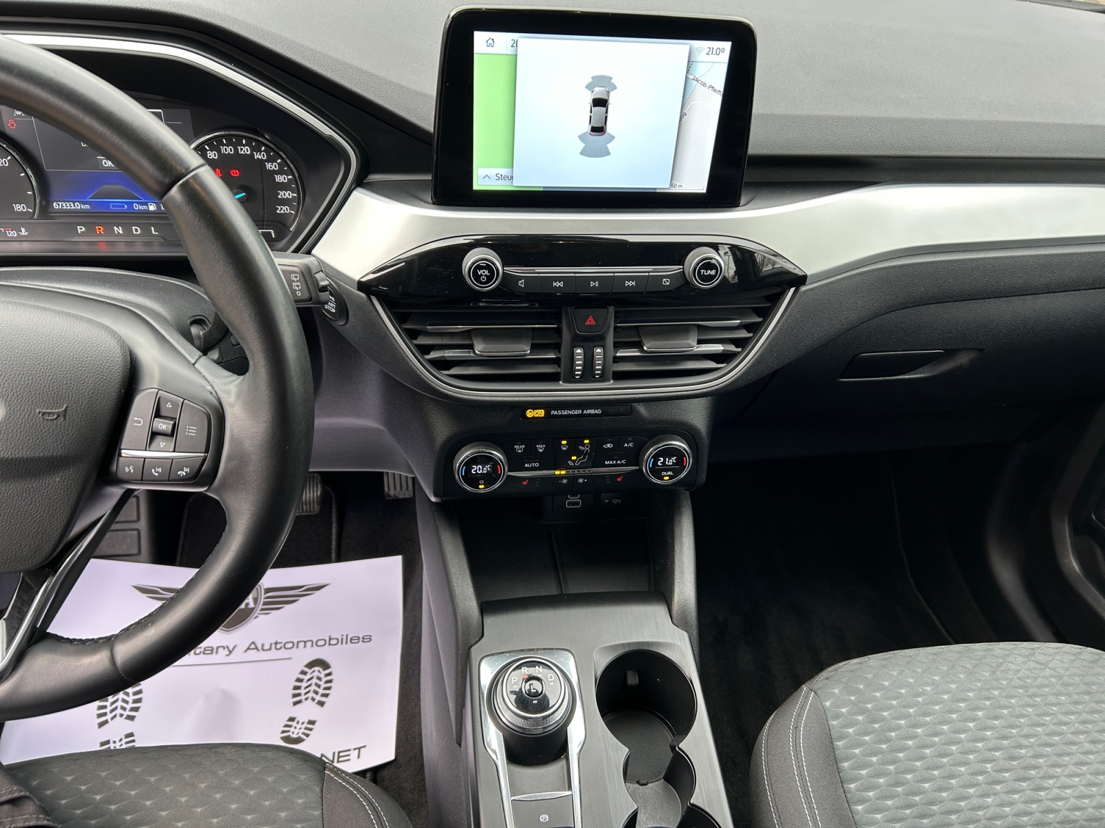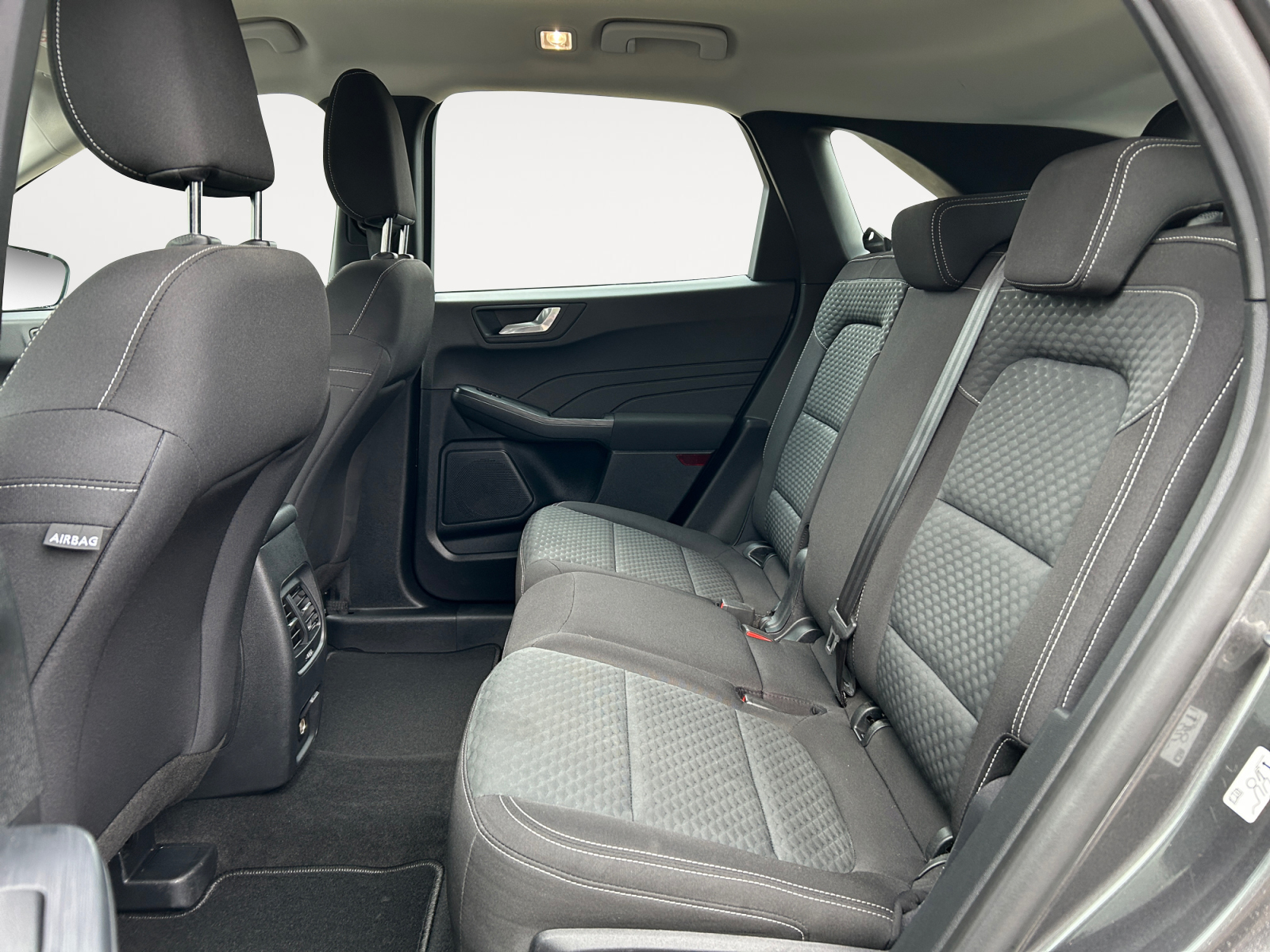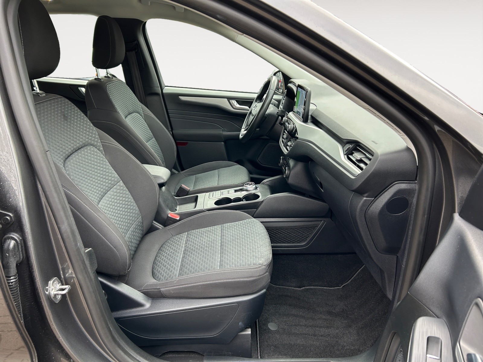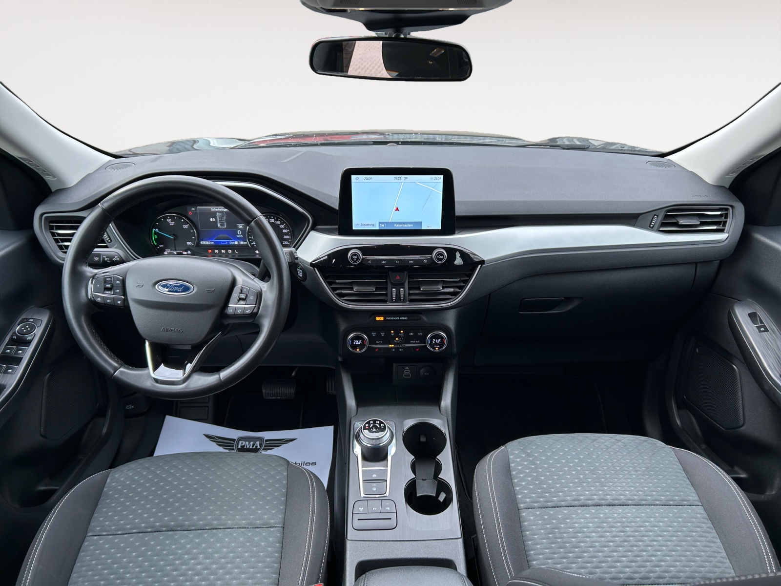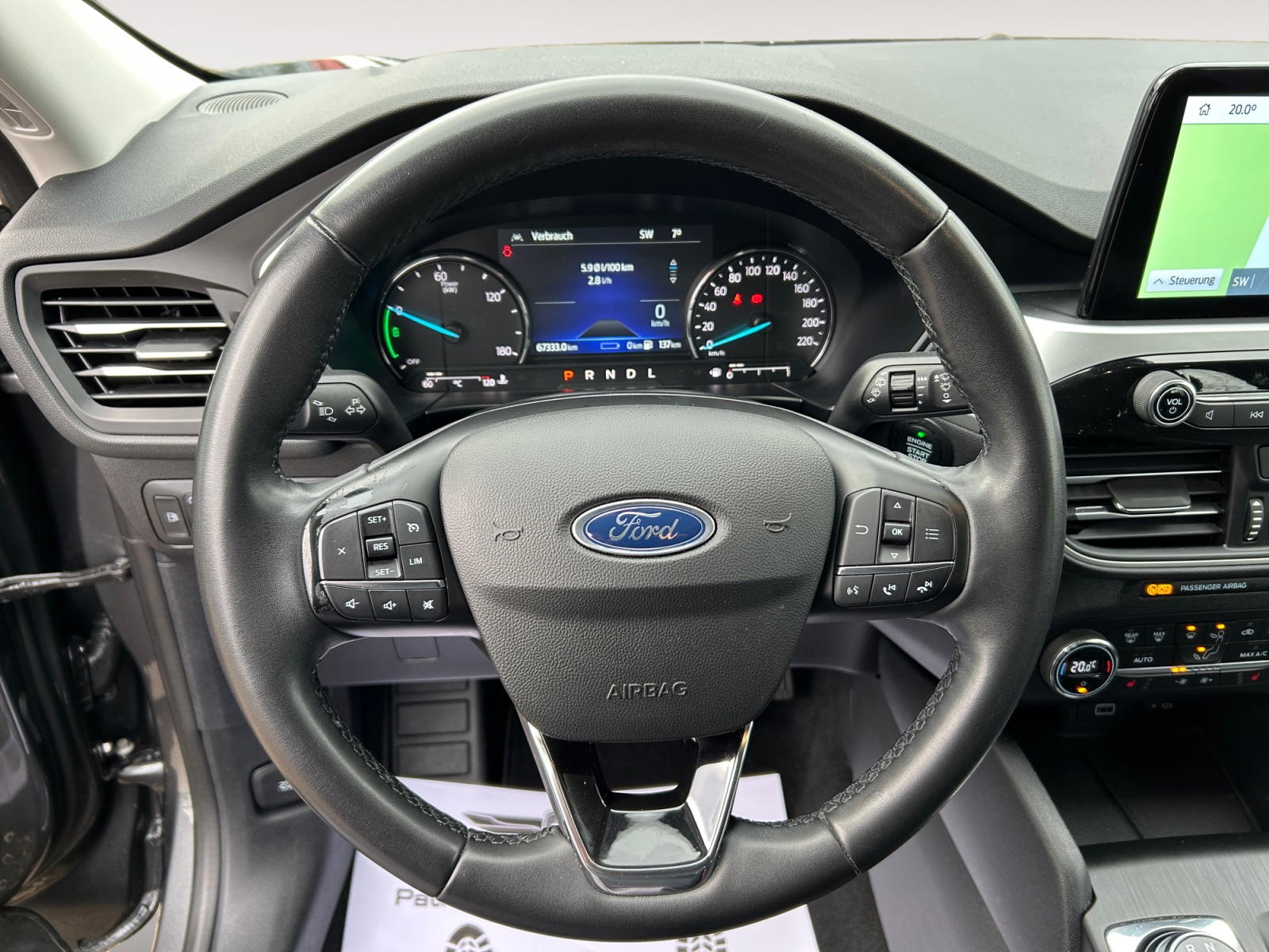 Acoustic pedestrian protection (external sound, AVAS) Anti-lock braking system (ABS) Traction control system (ASR) Drive type: front-wheel drive Ford audio navigation system with AppLink Digital radio reception (DAB), audio controls on steering wheel, 6 speakers, voice control and Bluetooth interface, USB port, Ford SYNC 3 with navigation Exterior mirrors electrically adjustable and heated On-board computer Fabric headliner Roof spoiler in body color Dual exhaust system Eco display for fuel-efficient driving (EcoCoach) Electronic stability program (ESP) Driver assistance system: emergency brake assist Driver assistance system: post-collision system Driver assistance system: pre-collision system Driver assistance system: forward collision warning, driver assistance system: active city stop Driver assistance system: lane keeping assist Power windows front and rear with comfort closing FordPass Connect including eCall Carpet floor mats Luggage compartment cover / roller blind Cruise control Intelligent speed limiter Automatic transmission – ECVT LED rear lights Hybrid 165 kW (engine 2.5 liters – 112 kW) Wireless charging tray for mobile devices Intelligent Protection System (IPS) Airbags for driver and front passenger, front and rear head and shoulder airbags, front side airbags, three-point rear seat belts, seat belt warning system front, seat belt warning system rear ISOFIX child seat mounting points Body style: 5-door Front head restraints adjustable in 4 directions Charging cable with Schuko plug Leather steering wheel (3-spoke) Steering column adjustable for height and reach Center console with armrest Front center armrest with storage compartment and 12V power outlet, front cup holders MyKey (second vehicle key programmable) Front fog lights Electric parking brake with auto-hold function Driver assistance system: hill start assist Parking aid system front and rear Wheelbase 2710 mm Tire repair kit Tire pressure monitoring system Split rear seat backrest Foldable rear seat backrest Low-emission according to Euro 6d emission standard Leather gear selector Headlights with projection lens design LED daytime running lights Headlight assistant with day/night sensor Electric power steering Front left seat adjustable (8-way) Lumbar support for front left seat Front right seat adjustable (4-way) Front seat heating Special edition 2 Sport seats Central locking with remote control Optional Equipment Trailer hitch preparation Trailer stability assist (TSA) Dual-zone automatic climate control Magnetic Grey metallic paint Alloy wheels 7×17 (5-spoke)